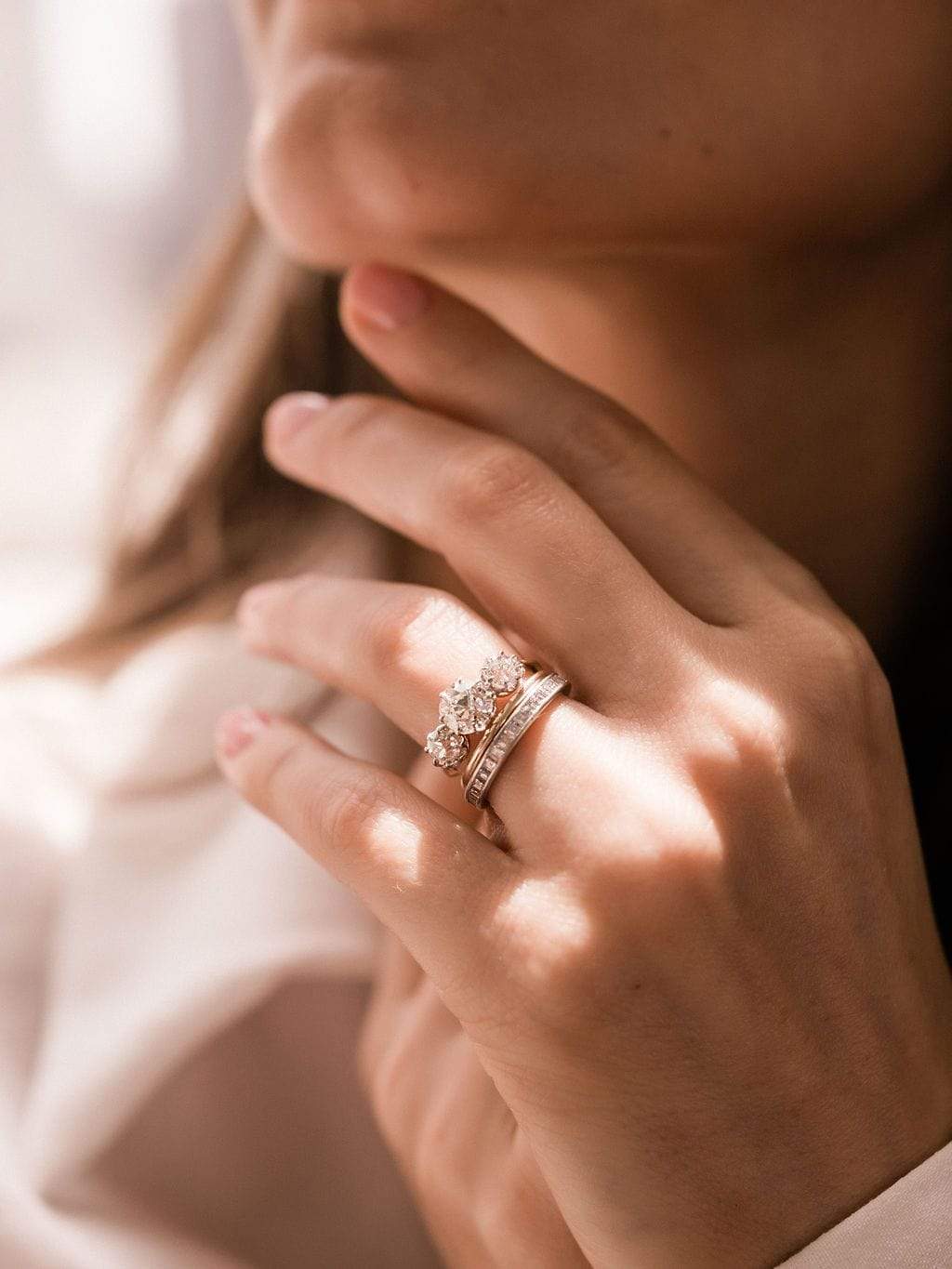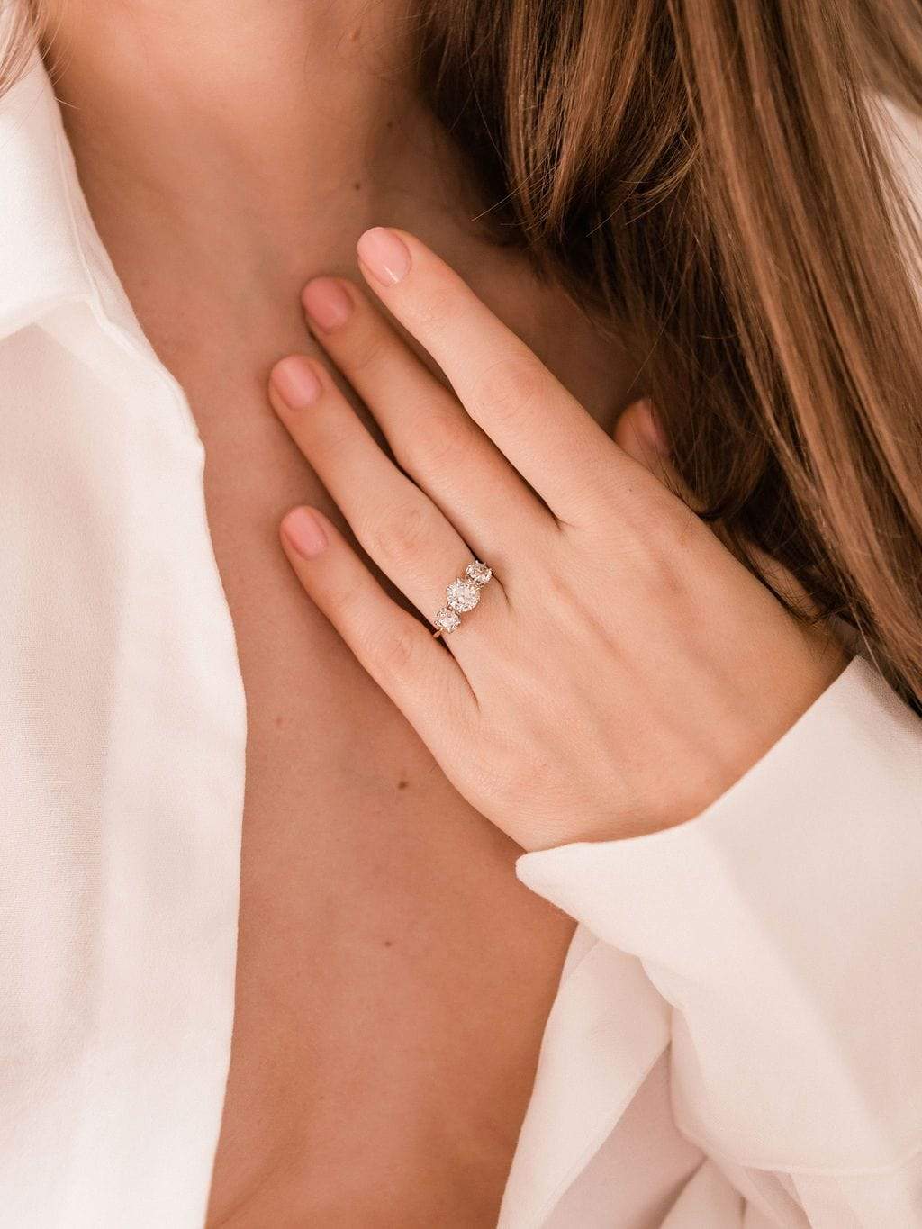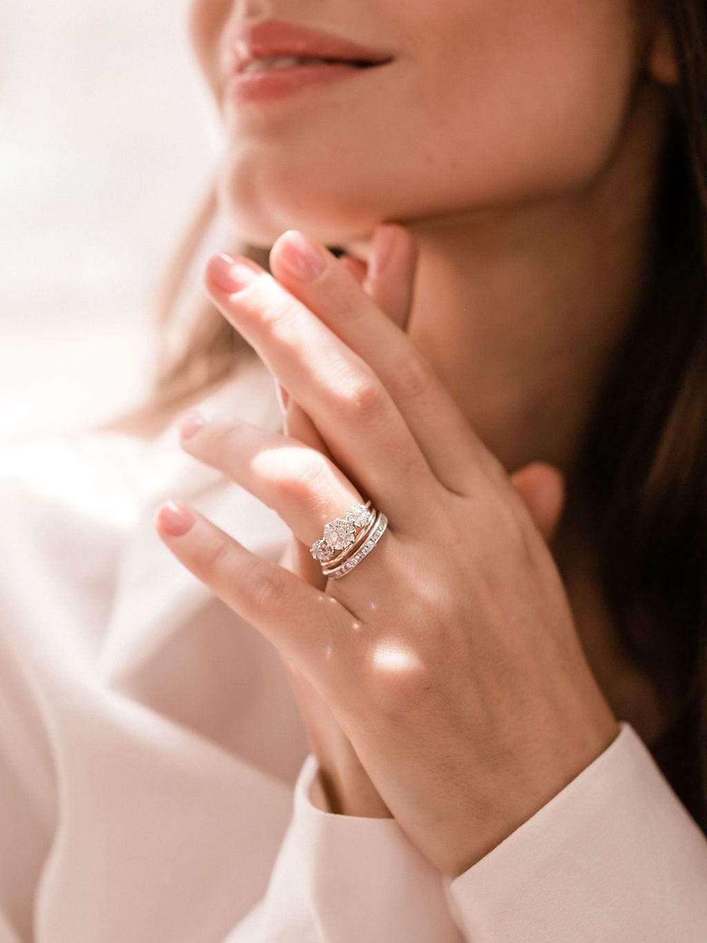 Our first two-tone Marielle and it is divine! Vibrant and bright diamonds are center stage in this crisp and clean delicate setting.