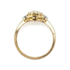 We love the contrasts of colors in this ring between the hues in the diamonds and the two-tone of the platinum and yellow gold.