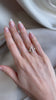 This perfect rose-cut pear diamond is accentuated by two gleaming old European cut diamonds. She is set low to the finger with the most perfect warm hue for for a unique take on a three-stone ring.