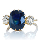 Unique 4.88ct Dark Teal Sapphire Ring with Old European Cut Side Diamonds