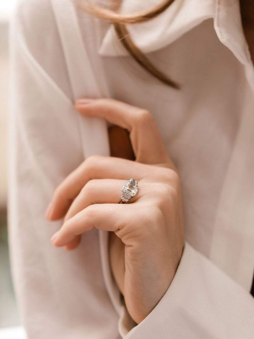 The Jax ring is an authentic vintage engagement ring from the Art Deco era circa 1925 ! This Vertical Baguette Diamond Engagement Ring centers a GIA certified 1.96 carat Emerald cut diamond of F color, VVS2 clarity. The diamond is set in a 4 prong platinum setting with two vertically set baguettes to each side, all combining for approximately 0.16 carats. The ring is currently size 5.25 and can be resized!