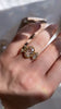 Big and beautiful. These three oval rose cuts create a long look on the finger that also spans the width of the finger for ample coverage. The diamonds have that beautiful scintillation we love in rose cuts placed in a unique 3 stone layout.