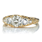 The Porter ring is an authentic vintage diamond ring from the Victorian Era circa 1890. The ring centers an approximately 0.70-carat Old Mine Cut diamond of approximately M-N color. On each side of the center stone are two smaller diamonds of approximately K-L-M color, all together combining for approximately 0.50 carats. The stone is set in an 18kt yellow gold setting. The ring is currently size 6.5 and can be resized!