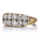 This double-row Victorian ring is a collector's dream. With gorgeous, scrolling details and chunky, glittery old mine cut diamonds, we love her for any finger you want to wear her on!