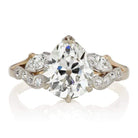 The Lucky ring is a vintage Birks diamond engagement ring from the late Art Deco era. The ring centers a GIA certified 2.55-carat Pear cut diamond of J color, VS2 clarity. The stone is set in a platinum-topped gold setting. To each side are 4 small round diamonds and a marquise diamond. The ring is currently size 6.25 and can be resized!