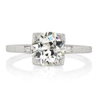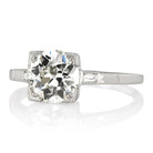 The Kitty ring is an authentic vintage engagement ring from the Art Deco Era. The ring centers a GIA certified 2.10-carat old European cut diamond of K color, VS2 clarity. The stone is set in a platinum box setting with a baguette set to each side. The ring is currently size 8.25 and can be resized!