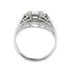 We can't get enough of this beautiful antique piece featuring a colorless, shining emerald cut diamond. The orientation of this bright step cut makes for an incredibly sleek look and its hidden side stones add a touch of whimsy to balance the whole look.