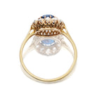 Royal blue hues and warm gold combine for this antique halo ring that takes up plenty of real estate on the finger, and glimmers from every angle.