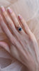 The Vashti ring is an authentic vintage sapphire and diamond cluster ring from the Edwardian Era circa 1900. The ring centers a GIA-certified 1.55-carat Burma No Heat Oval Cut sapphire. Surrounding the center stone is a halo of 12 Old Mine Cut diamonds of approximately J-K color, totaling approximately 0.80 carats. The ring features rose gold prongs and a 14kt yellow gold band. The ring is currently size 7.5 and can be resized!