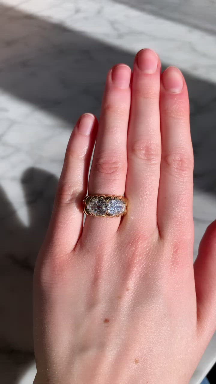 The Toi et Moi ring that dreams are made of! An incredible find with not 1, but 2 stunning antique pear diamonds set in this bold, chunky golden ring from the renowned Parisian Jeweler Chaumet.