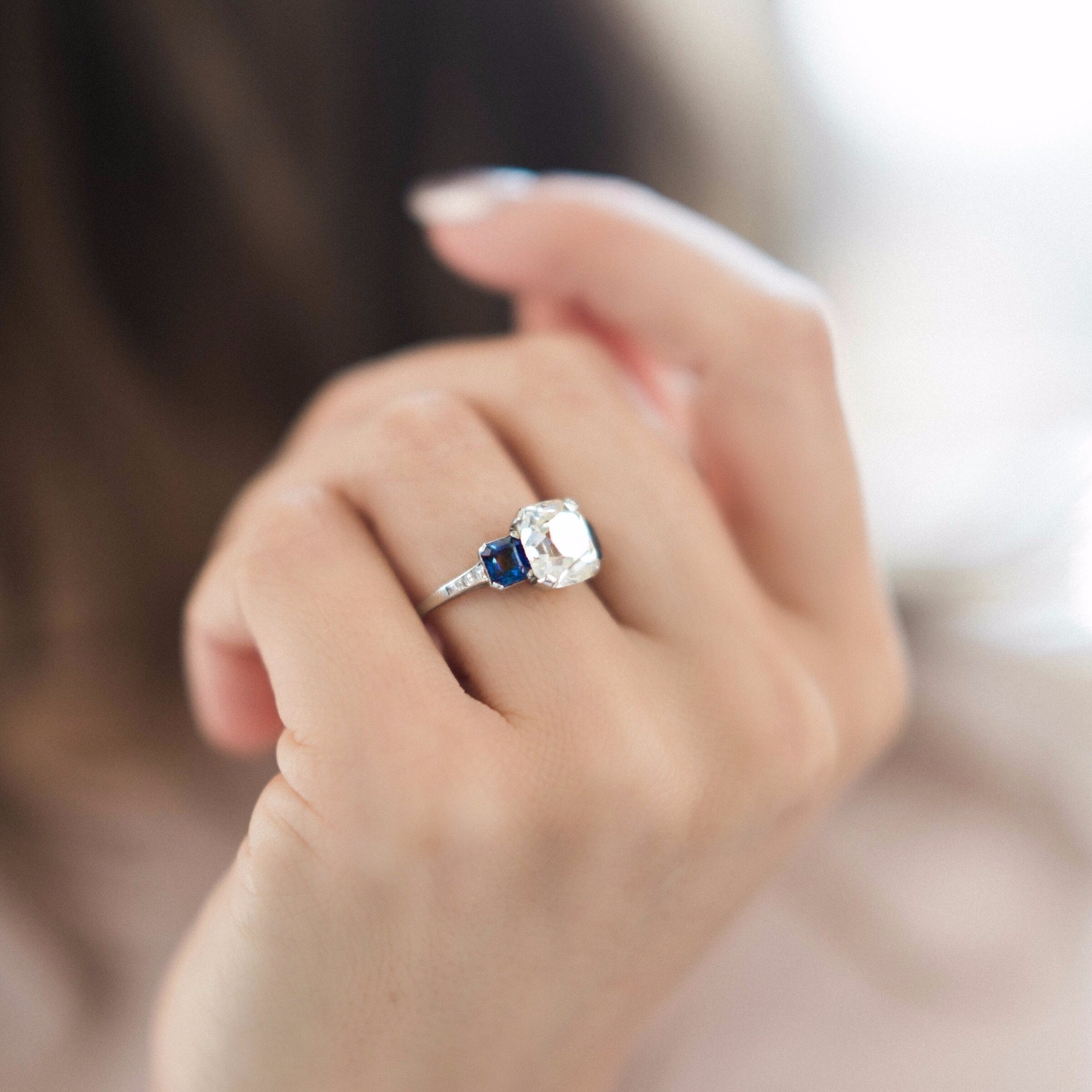Vintage Cushion Cut Engagement Ring With Sapphires