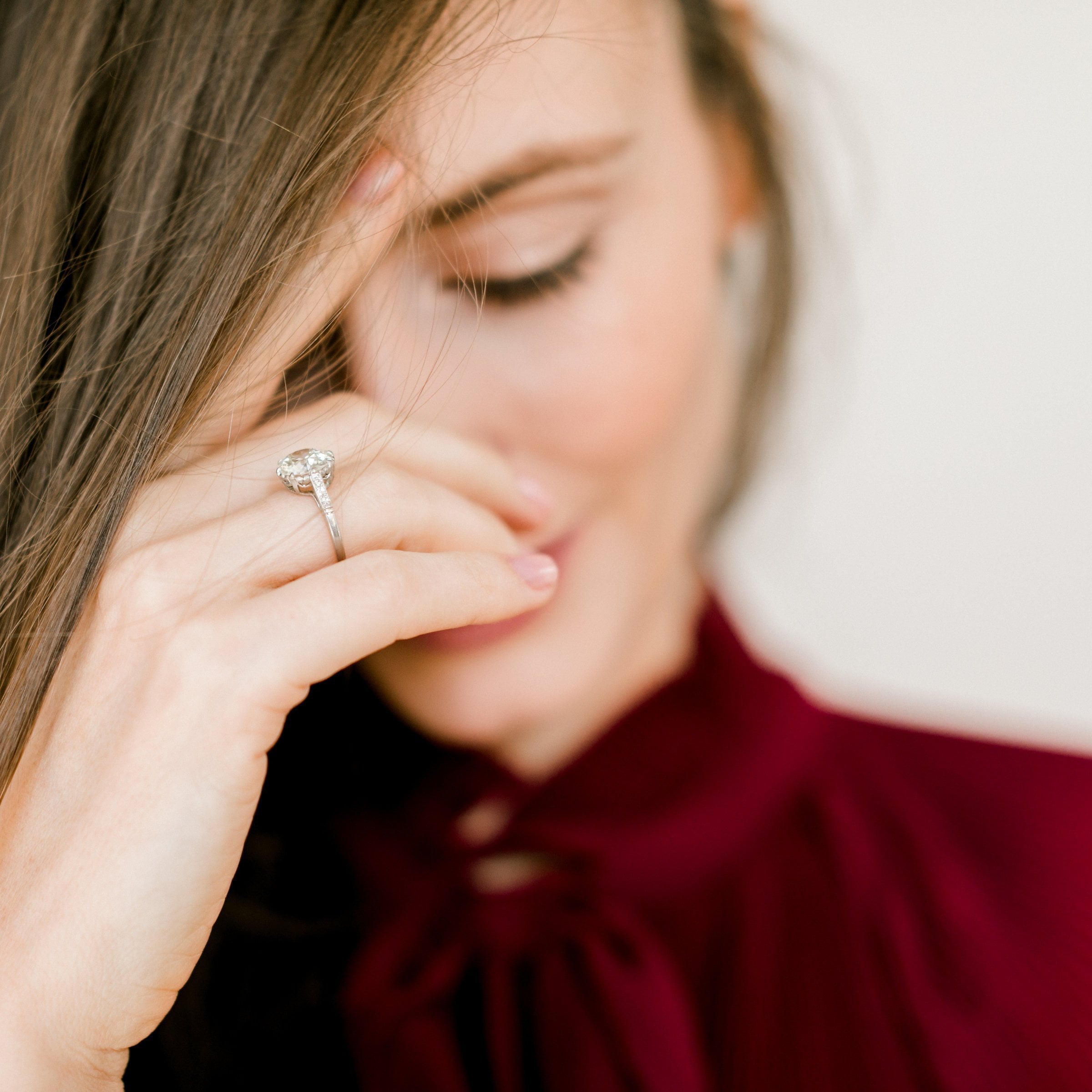 Classic and timeless with a gorgeous old European cut! The ring is very low-profile with such lovely basket details! The band is delicate to make the center stone really shine!