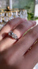 We just adore the uniqueness and romanticism of a Toi et Moi ring. This one is beautifully done with two lovely antique diamonds with slightly oval shapes spanning the finger in this beautifully crafted antique ring.