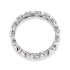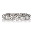 The Lilac band is an authentic vintage eternity band from the Art Deco era. The band has 15 east-west set marquise cut diamonds that are set into a platinum setting. The diamonds combine for approximately 0.80 carats of I-J color, VS clarity. The sides of the band have millegrain and delicate hand-engravings. The band is currently 4.75 and cannot be resized.