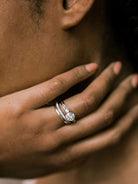 A beautiful vintage piece centering a gorgeous diamond. The side diamonds add some lovely extra shimmer and the band has a very slight knife edge lined with a double row of millegrain.