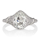 The Isolde ring is an authentic vintage engagement ring from the Art Deco Era. The ring centers a GIA certified 1.92ct Pear cut diamond of I color, VS1 clarity. The diamond is set into a 4-prong platinum setting with gorgeous and delicate filigree and 16 small diamonds set around the base of the diamond in a semi-hidden halo. The ring is currently size 5.5 and can be resized.