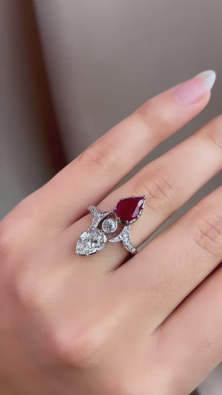 Vintage Pear Shaped Diamond & Ruby Toi et Moi Ring