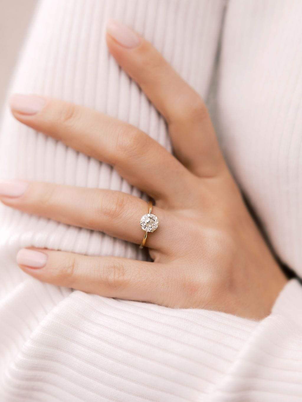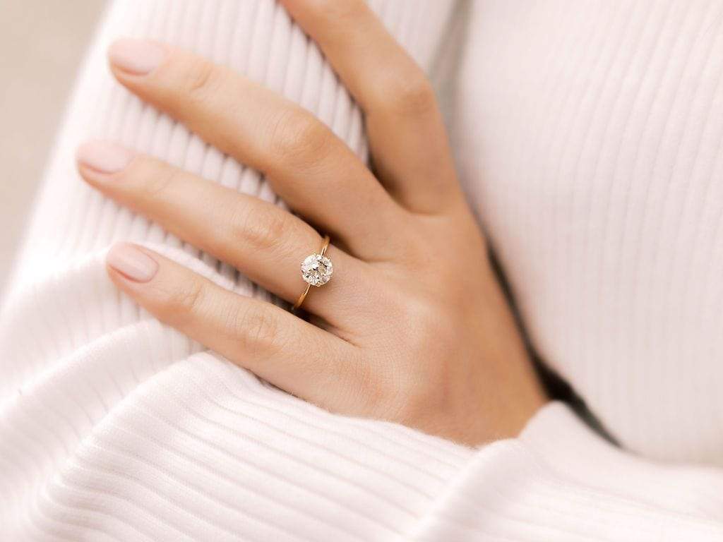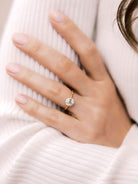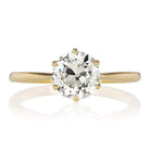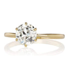 The Bea 1.36 ring is a vintage-inspired VB-made diamond engagement ring. The ring centers a GIA certified 1.36-carat old European cut diamond of M color, VVS2 clarity. The diamond is set in a 6 prong 18 karat yellow gold setting with a slightly tapered shank. The ring is currently size 5.75 and can be resized!