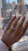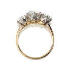 The Martina ring is a stunning and vivid three-stone ring. Set in a gold band with platinum prongs, this piece offers incredible full-finger coverage as well as plenty of chunky antique shine.
