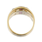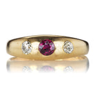 Vintage Three Stone Red Ruby and Old Mine Cut Diamond Gypsy Ring