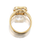 Utterly chic. This bold, golden number shines and shimmers on the hand with an incredible diamond. She's 4.52 carats but very flat and spready so faces up more like a 7-8 carat stone. Full of warm shimmer, her color blends beautifully with the creamy gold in this finger-hugging, low-profile dream.