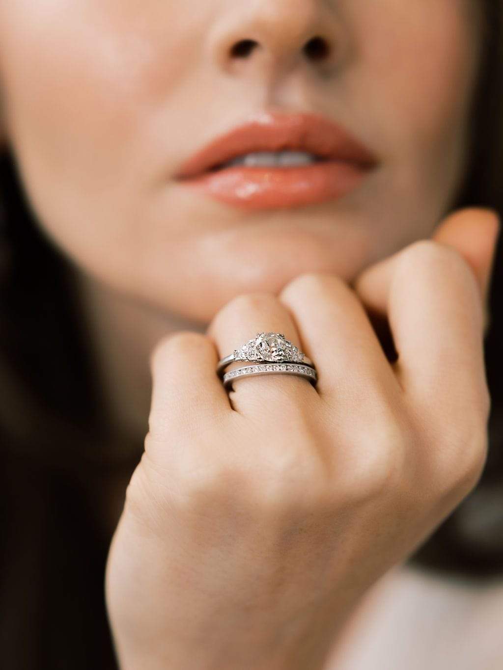 Clean and simple with vivid diamonds! The shoulders create a finger-spanning look while the center stone shines brightly and beautifully. This ring stacks nicely with bands!