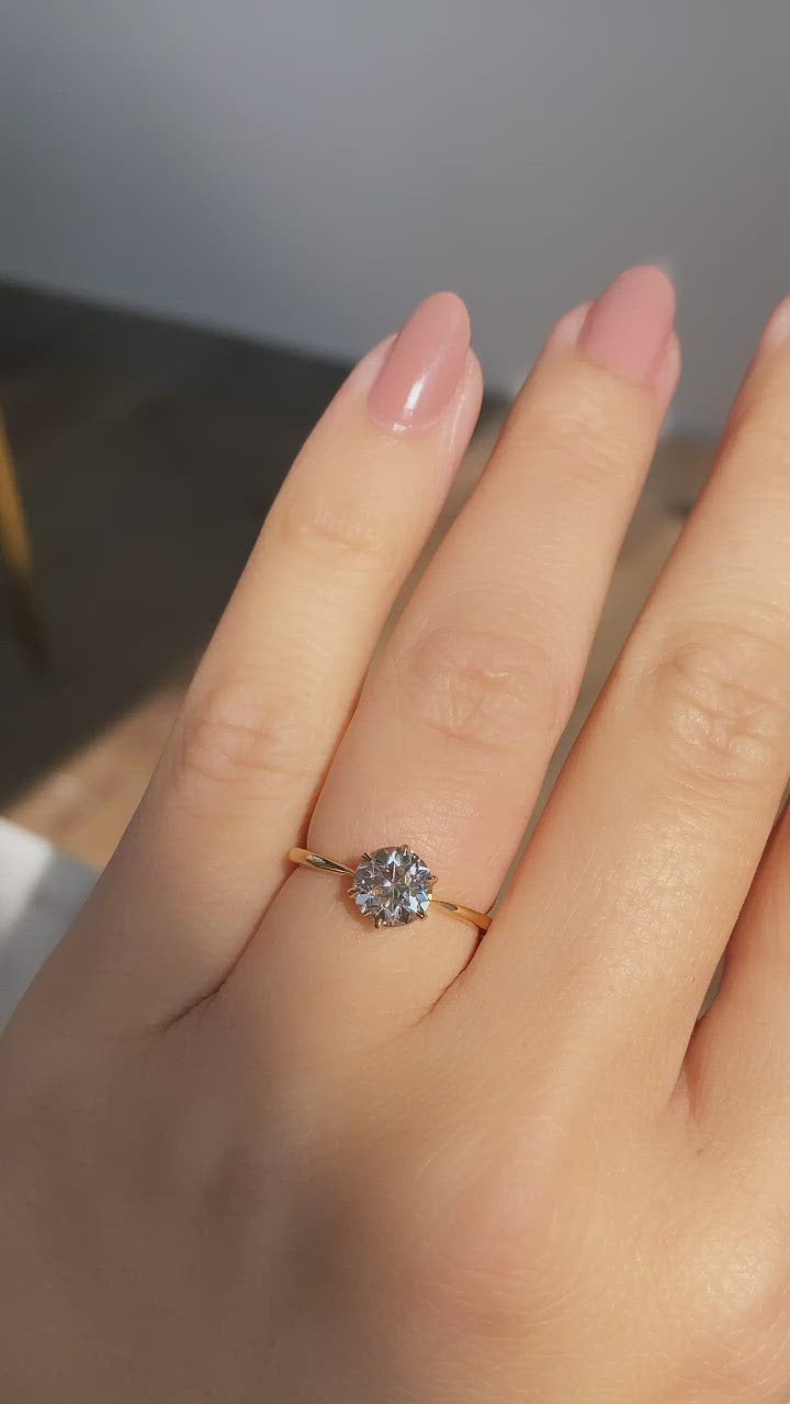 The Bea 1.32 ring is a VB original design made right here in NYC using an authentically antique diamond. The ring centers a GIA certified 1.32-carat old European cut diamond of H color, VS1 clarity. The stone is set in a 6-prong 18kt yellow gold setting. The ring is currently size 5.75 and can be resized!