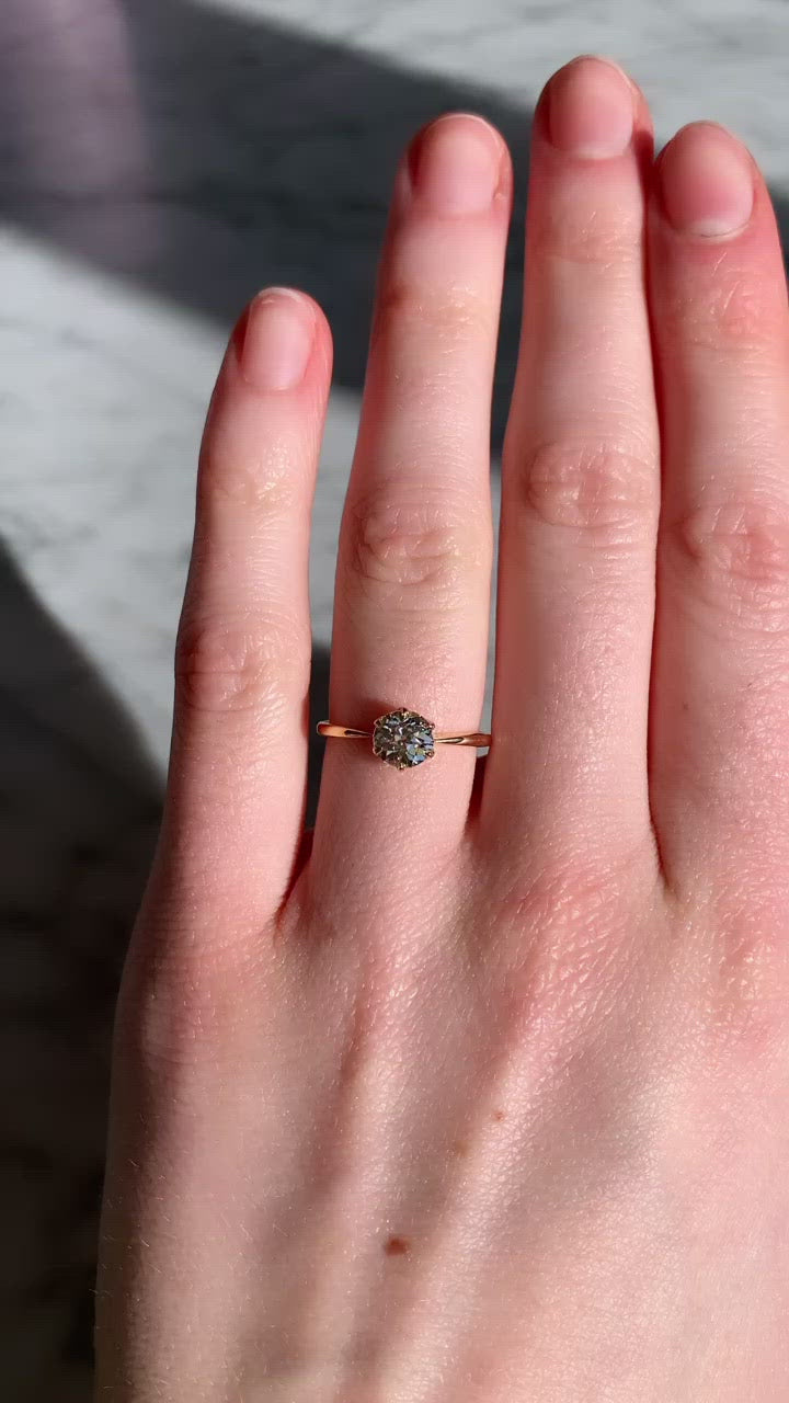 We love the simplistic elegance of the Bea ring with its gently tapered band and classic vintage 6 prong basket to beautifully display an antique diamond.