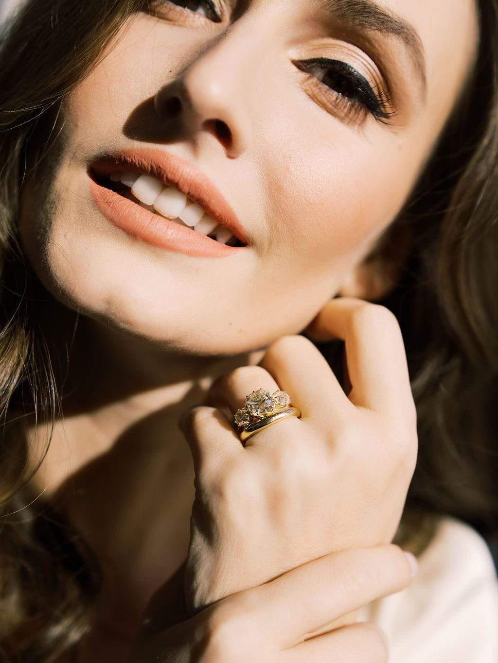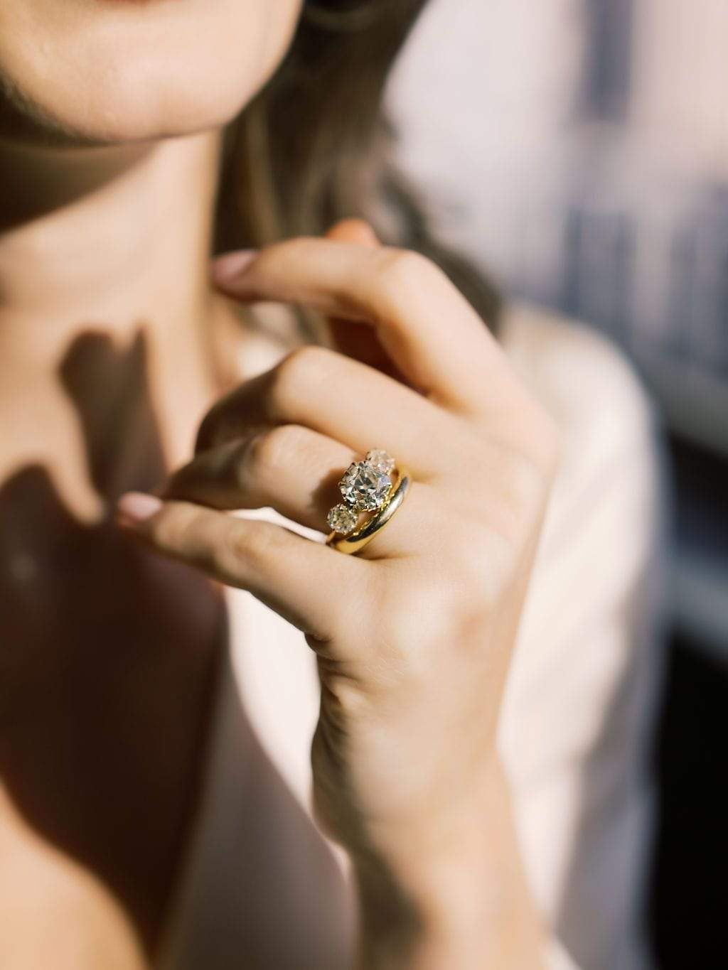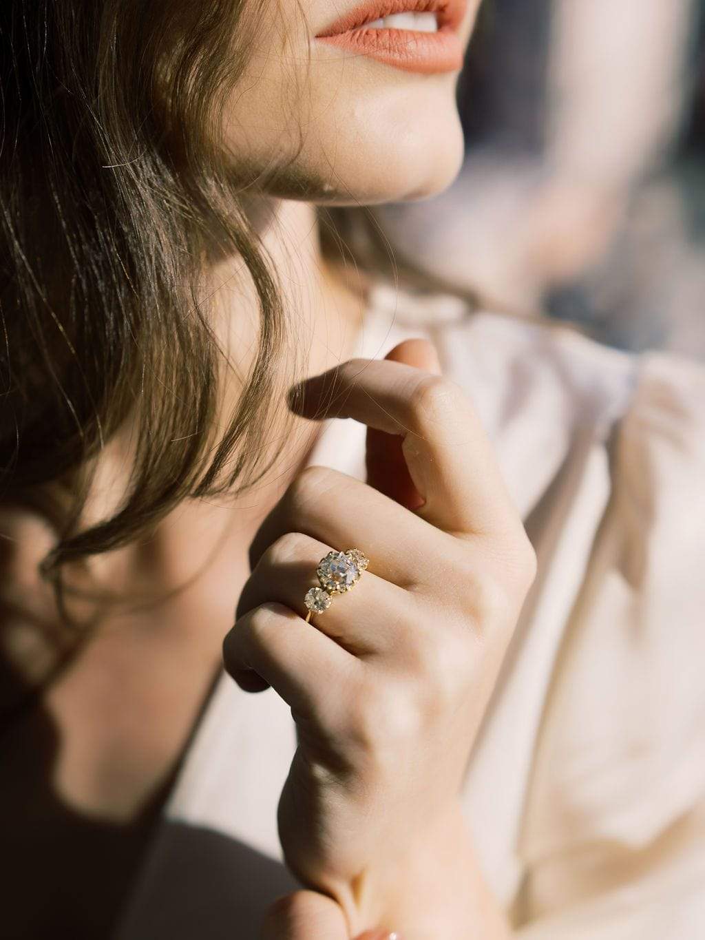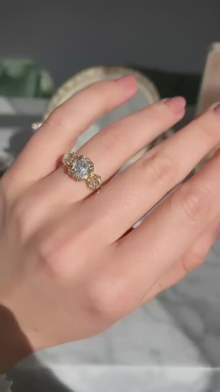 A gorgeous three stone ring with the dream old mine cut diamonds. The diamonds are on the chunkier side and create this beautiful spread across the finger.