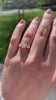 A perennial VB favorite! This rendition has gorgeous white diamonds with beautiful facets and more petite (but still substantial!) side stones that create the perfect finger span.