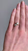 The Sylvia ring is an authentic vintage diamond ring. The ring features two old cut diamonds. One is a GIA-certified 1.06-carat old European cut diamond of M color, VS2 clarity and the other is a 1.09-carat old European cut diamond of M color, VS2 clarity. The stones are set in a 10 karat yellow gold setting. The ring is currently size 6.5 and can be resized!