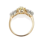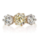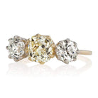 The Marielle 1.19 ring is a VB original design made right here in NYC using authentically antique diamonds. The ring centers a GIA certified 1.19-carat old mine cut diamond of U-V color, SI1 clarity. The center stone is set in an 18 karat yellow gold setting. The side stones combine for 1.07 carats and are set into platinum baskets and are a contrasting H-I color. The band of the ring is 18K yellow gold. The ring is currently size 4.75 and can be resized!
