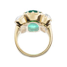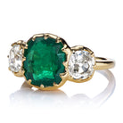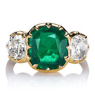 Zambian Emerald and Old Mine Cut Diamond Side Stones in Collet Setting